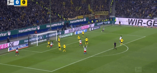 第90+7分钟,柯尼希斯多费尔最后时刻头球破门,汉堡1-1多特