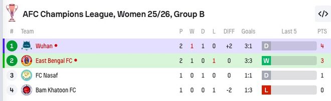 在北京时间11月20日结束的女足亚冠B组第2轮一场对决中,武汉车谷江大女足2-0完胜印度的东孟加拉队,小组前2轮1胜1平保持不败。上半场,王霜双响+造点,宋菲献助攻,邓梦晔、奥乌苏失单刀。下半场,奥乌苏中柱并且再次2次浪费必进球。最终,武汉女足2球小胜。