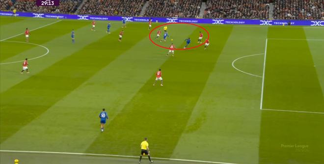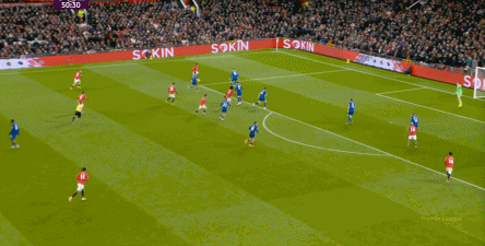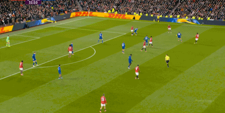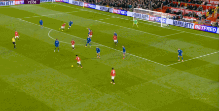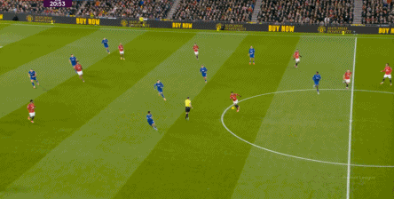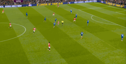 而且在红牌后的第一次进攻当中,曼联除了利用到了中场身侧的空间之外,卢克-肖也来到了前场:
