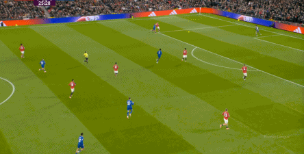 而在调整环节,半场换上芒特,从而将阿玛德-迪亚洛换回右翼卫,包括之后用梅努换下今天明显发挥不佳的卡塞米罗,也都是阿莫林尽力提升进攻所想的办法。