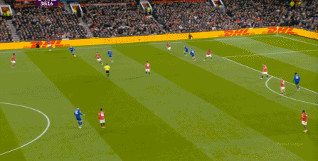 就在第二次带动球队向前之后,埃弗顿得以留在了前场,来到了又一个转折点,也就是曼联的丢球时刻。
