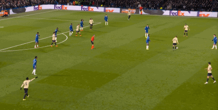 所以在攻守形势并未逆转的情况下,下半场的切尔西依旧占据着优势,可利用的空间随着人数优势显现:
