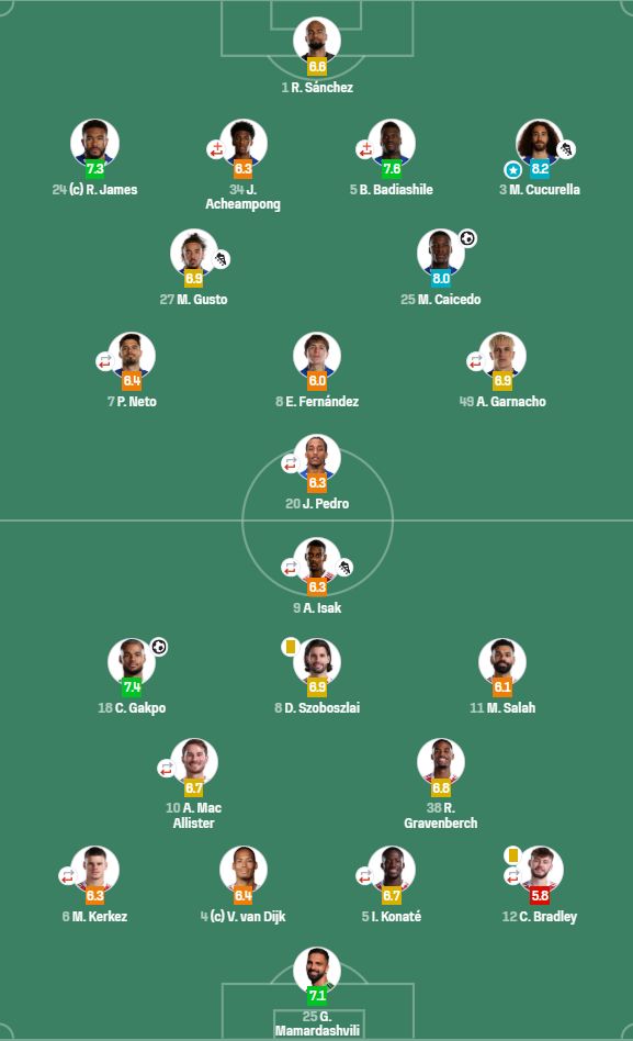 后防问题也是存在,范迪克的个人比赛风格是既定的,他不希望自己被过(这不一定是坏事)因此需要队友有足够配合,然而,科纳特似乎在续约问题上有些不专注了,跟队友的配合越发不默契。凯塞多禁区外射门、加纳乔的争议点球、恩佐的击中立柱、及埃斯特旺的绝杀,他们的确是没怎么防好。